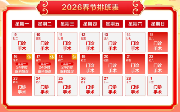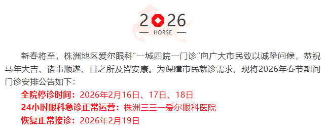 马年大吉“医”直守护,株洲地区爱尔眼科医院2026年春节排班
